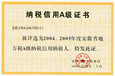我公司繼被省地稅局評(píng)為“2001-2002年度省地稅A類(lèi)納稅信譽(yù)等級(jí)單位”后,近日又被省地稅局評(píng)為“2004-2005年度安徽省地方稅A級(jí)納稅信用納稅人”。這是省地稅局對(duì)納稅人給予的最高榮譽(yù),也充分體現(xiàn)了省地稅局對(duì)我公司近年來(lái)在稅務(wù)登記、納稅申報(bào)、稅款繳納、財(cái)務(wù)管理、納稅資料報(bào)送、發(fā)票管理等方面工作的認(rèn)可。