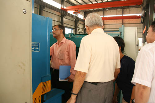 在公司領(lǐng)導(dǎo)的陪同下,PRAKASH先生參觀了公司的成品車(chē)間和生產(chǎn)車(chē)間,對(duì)我公司的生產(chǎn)及研發(fā)能力表示出極大的贊賞。我公司智能化的辦公和流水線(xiàn)系統(tǒng)吸引了PRAKASH先生一行。在操作人員的協(xié)作下,有著二十多年從業(yè)經(jīng)驗(yàn)的PRAKASH先生對(duì)我公司的QC11Y大型機(jī)床進(jìn)行了細(xì)致入微的考察,而我公司的機(jī)床也以其過(guò)硬的品質(zhì)和精密的設(shè)計(jì)贏得了PRAKASH先生的好評(píng)。