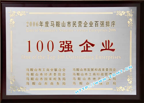 近期,由馬鞍山市工商業(yè)聯(lián)合會及馬鞍山市總商會聯(lián)合主辦,市發(fā)改委,經(jīng)委,工商局,國稅局,地稅局,商務(wù)局,統(tǒng)計局共同組織開展的2006年度全市民營企業(yè)百強排序工作已落下帷幕。我公司入圍2006年馬鞍山市民營企業(yè)營業(yè)收入總額100強及市民營企業(yè)納稅總額100強,也是我公司連續(xù)三年獲此殊榮。
