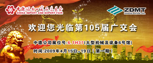 中德機床將參加第105屆春季廣交會,具體時間和地點是廣交會一期,4月15—4月19日,琶洲館大型設備及機械展區(qū)(6號館),展位號 6.1H37。歡迎各位新老客戶光臨。