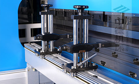 ●可調(diào)式檔指,手搖升降,可適應(yīng)不同模具;橫梁雙線軌設(shè)計(jì),零游隙。